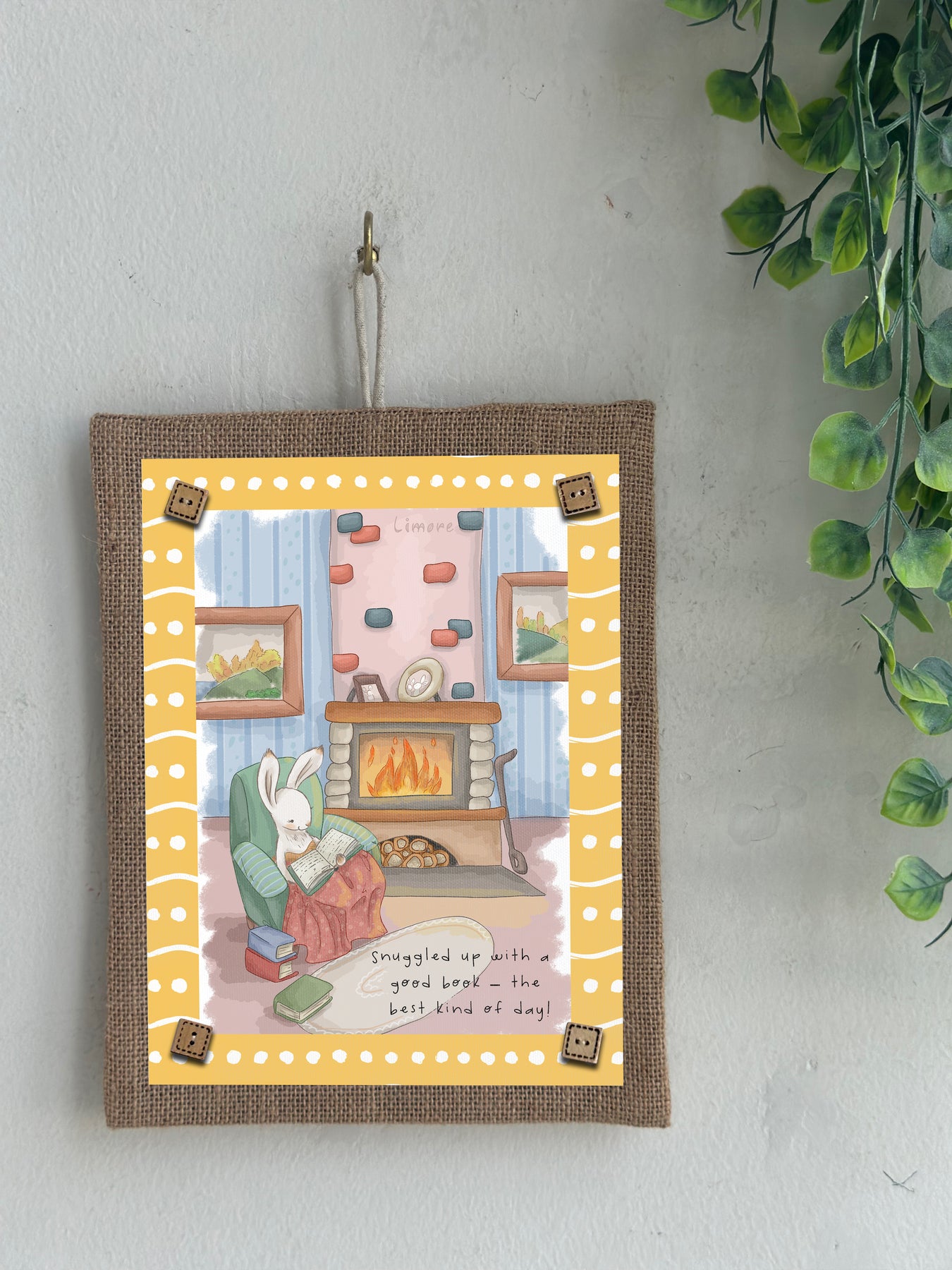 This sweet illustration from our Bunny’s Good Habits collection shows Bunny happily reading and snuggling into a comfy spot. The quote reads: “Snuggled up with a good book — the best kind of day!”