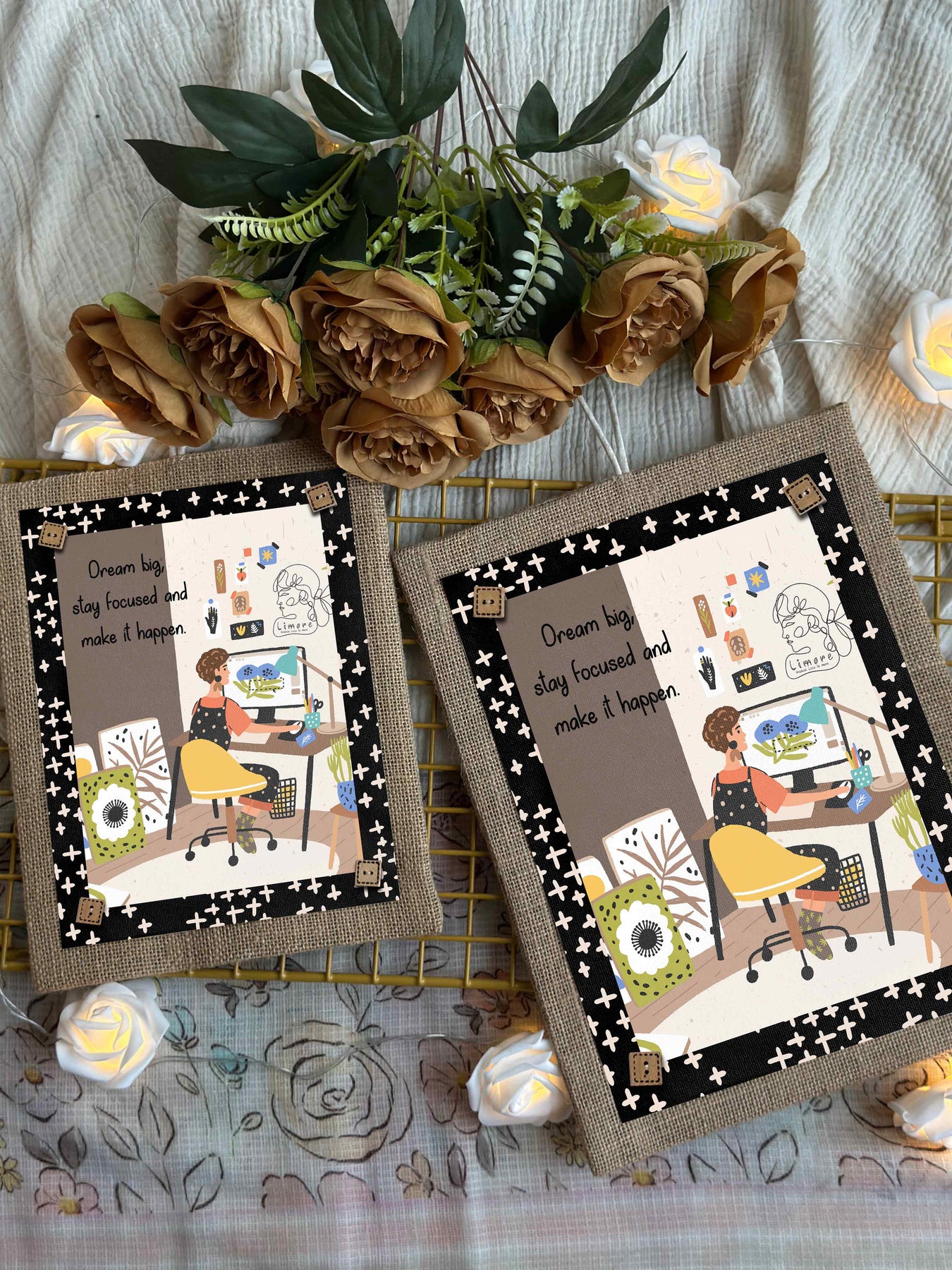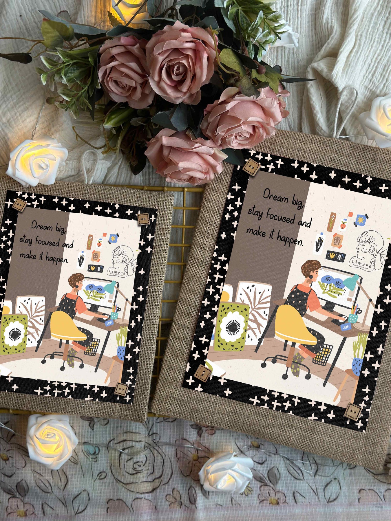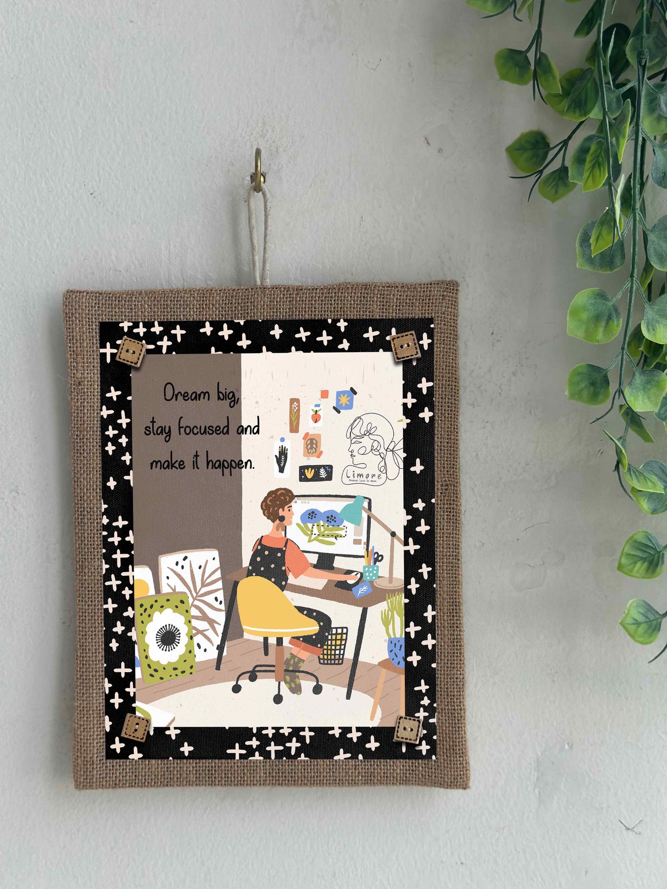 We believe in the magic of details, which is why we have added wooden buttons for decoration and a loop for easy hanging. This artwork is ideal for anyone who values creativity, determination, and gentle reminders. All of our designs are original, protected by copyright.
