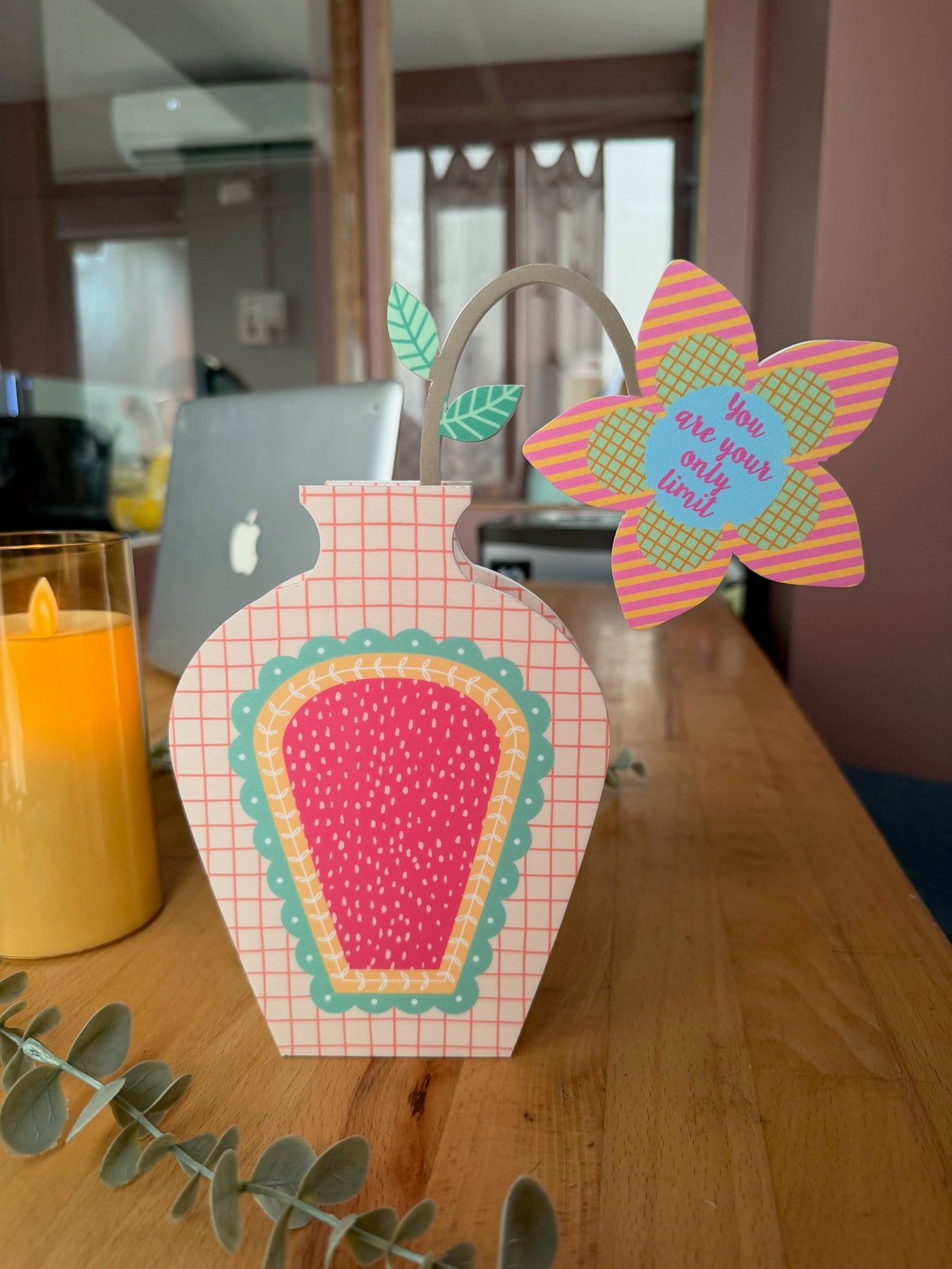 Shaped like a classic vase and finished with a checkered pattern, this piece feels steady and reassuring. The soft inner detailing keeps the design calm and balanced, while the quote “You are your only limit” appears on the flower, offering a quiet push to believe in yourself and your potential.