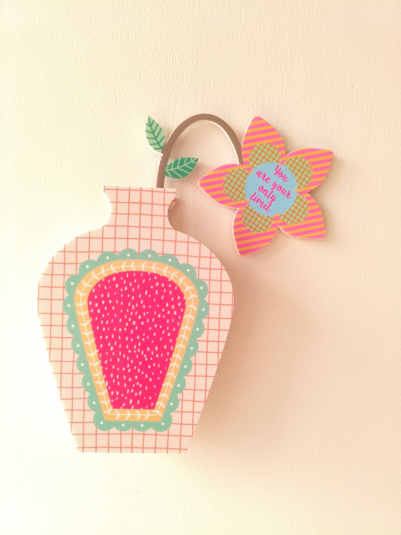 Made in durable acrylic, these vases were created as a lasting alternative to real flowers that don’t stay forever. While fresh blooms fade with time, these carry positive words that remain with you every day. Lightweight yet sturdy, they can be placed on a desk or shelf, or hung on a wall, making them easy to style across different spaces.