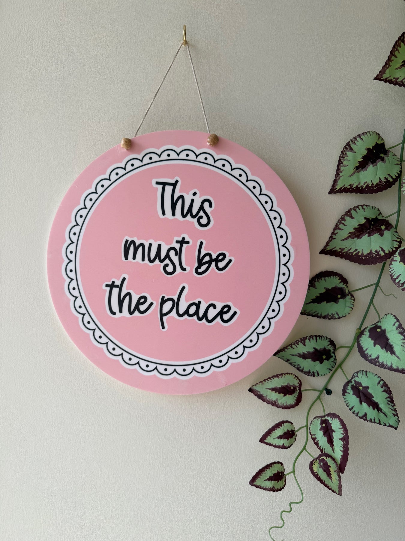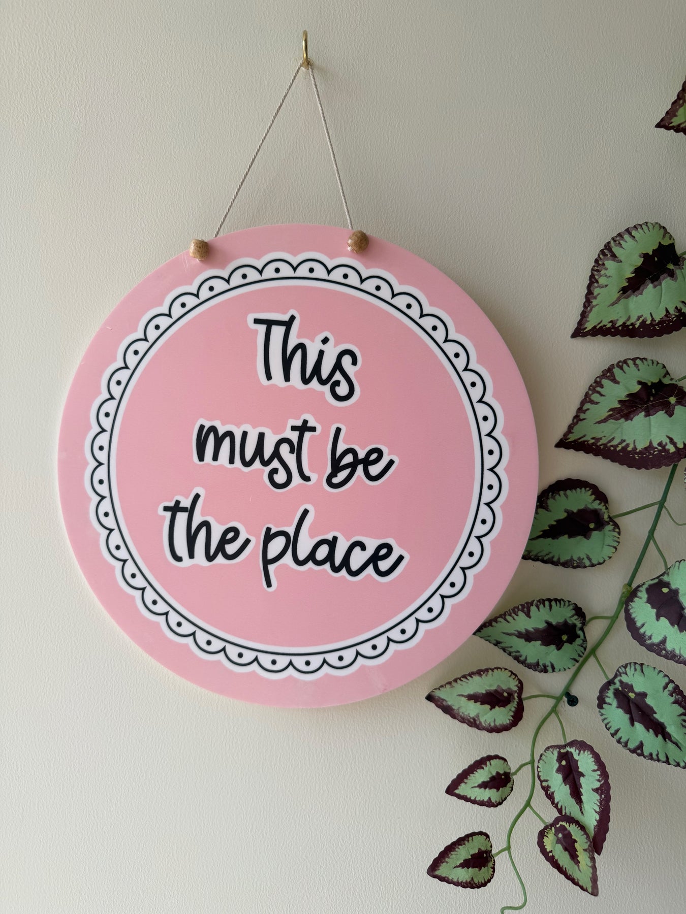 This blush circle comes with subtle inner borders that softly outline the quote “This must be the place.” It captures that familiar moment of ease — when everything feels right, your mind slows down, and you know you’re exactly where you’re meant to be.